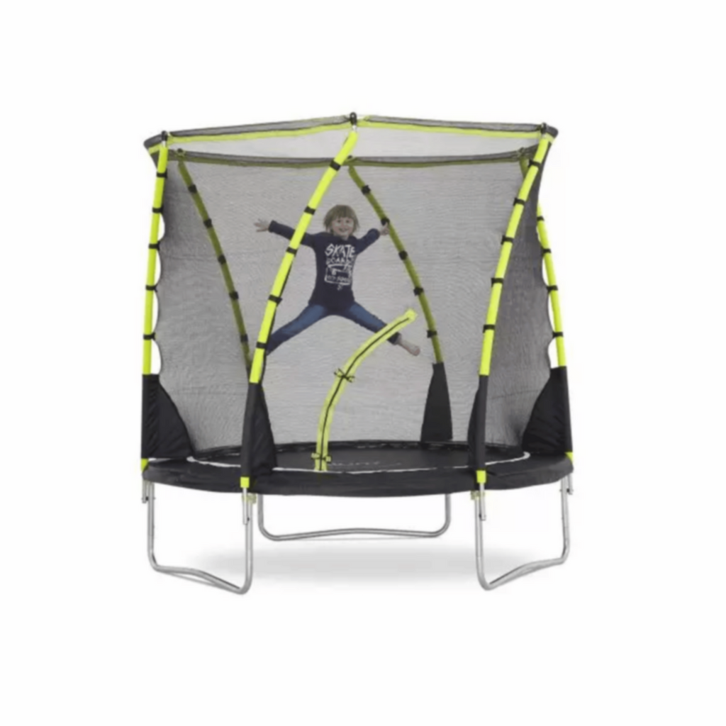 Engineered to deliver performance, style and safety with every bounce, Plum" s 8ft Whirlwind Trampoline will be a garden talking point for years to come. Fitted with a neon swirl enclosure that protects the user from the springs and frame parts, the contemporary 8ft trampoline is fit for safety and style in equal measures. A thick, galvanised steel frame, zinc coated springs and durable, weatherproof materials ensure that the Whirlwind is an investment built to last.