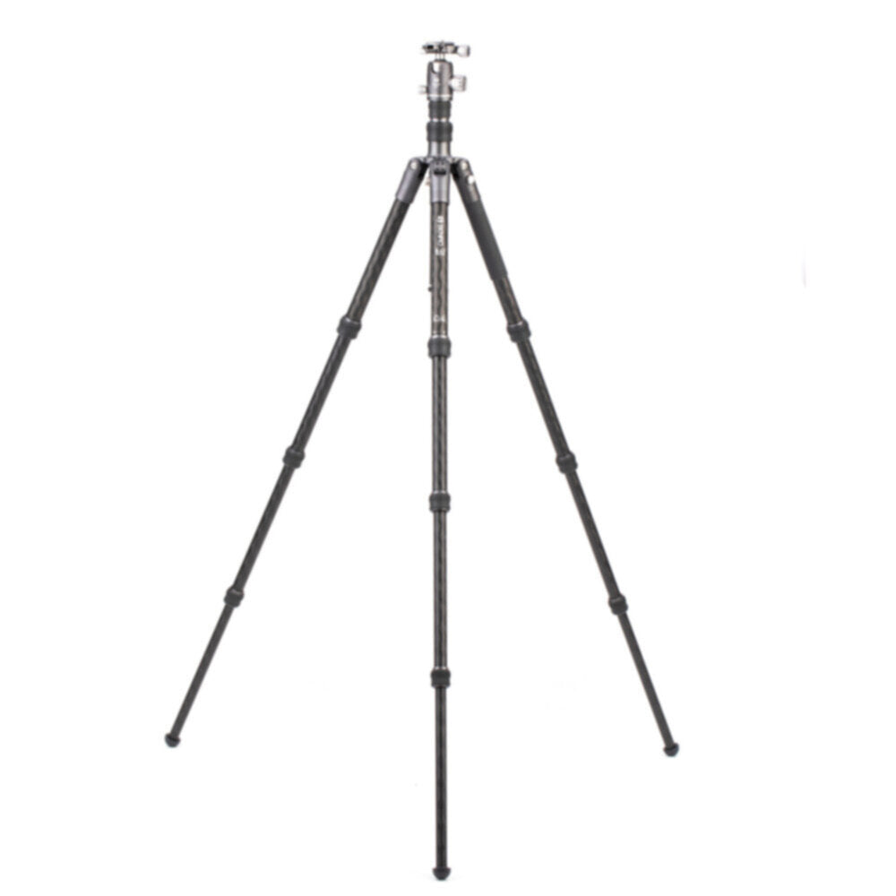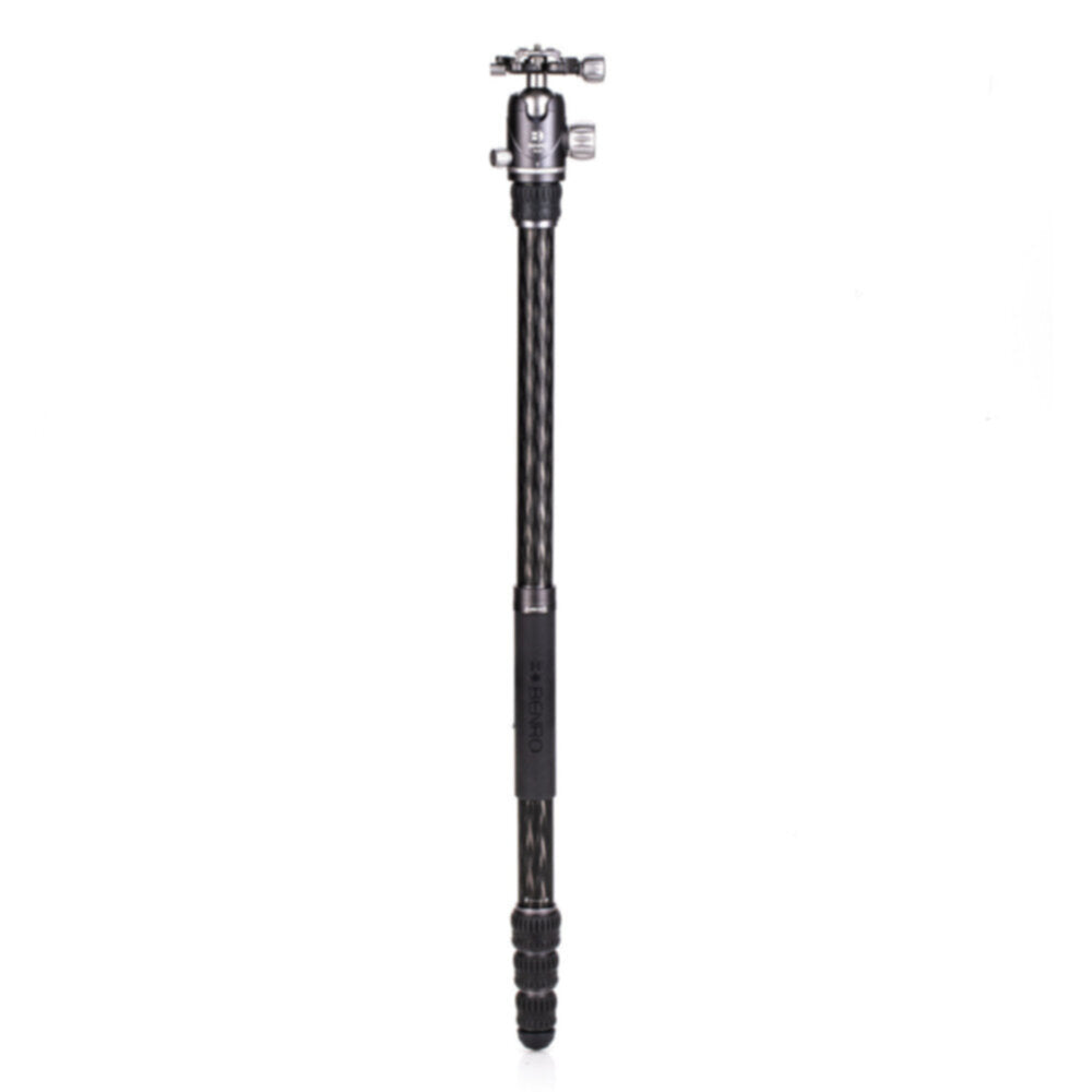 Support up to 35 lb with the FBAT24CVX25 Bat Carbon Fiber Tripod Kit with VX25 Ball Head from Benro. Employing twist locks, the four section tripod rises to a height of 70" (5.8'), has a reversible column that lets you literally shoot at ground level, and uses a reverse folding leg design that allows it to fold down to just 17.3". Its light weight of just of just 3.9 lb makes it the ideal travel tripod, and the included VX25 ball head has separate pan and ball locks and an Arca type clamp with a quick release plate.