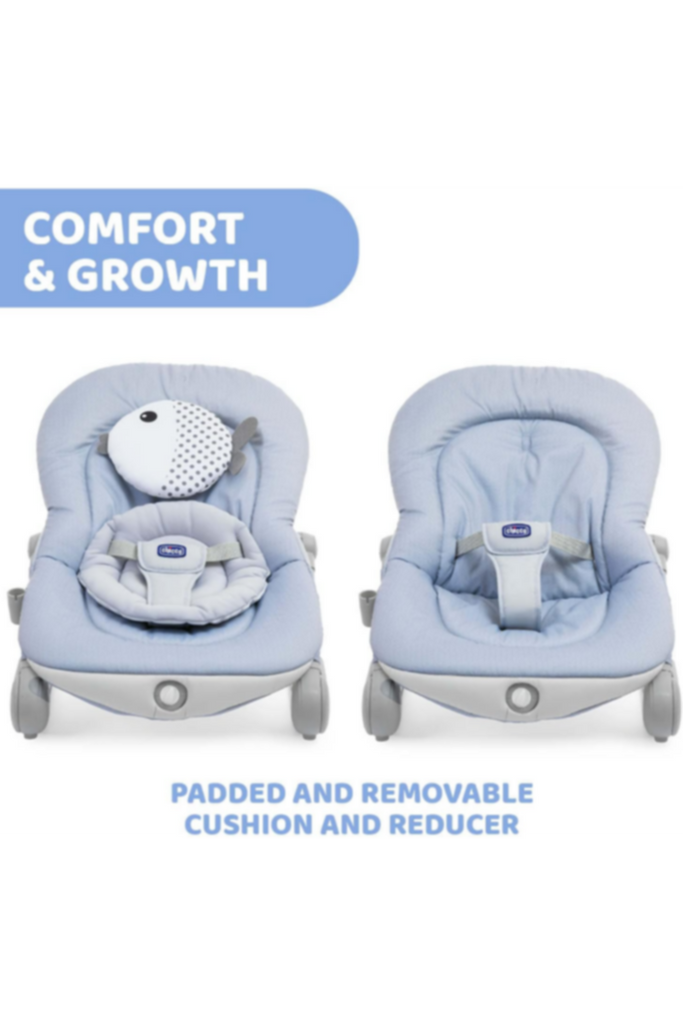 The colourful baby bouncer Balloon by Chicco supplies your child with many diversified activities. With this loyal companion, your child can explore his or her new world while feeling both relaxed and calm. A headrest as well as a seat insert for the smallest among us supply them with maximum comfort. When your child has grown, you can easily remove the headrest and seat insert. This way, children right from birth up to approx. 18 kg can enjoy all the advantages of this adorable little helper.