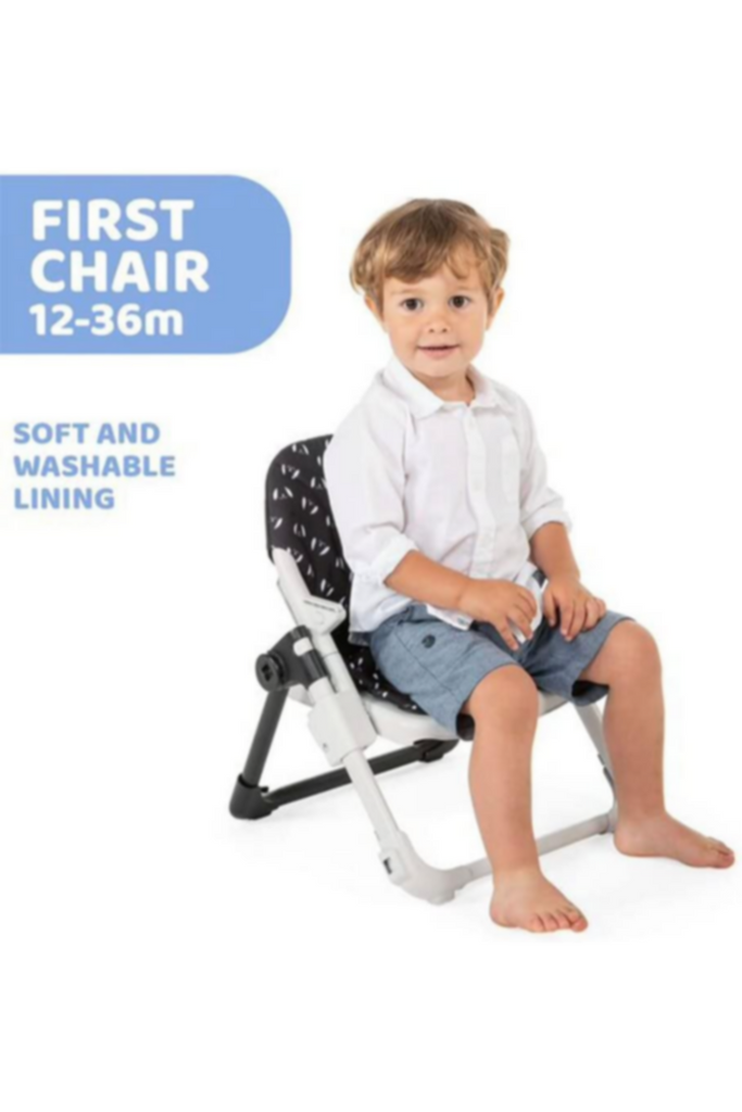• Childs chair: By removing the tray, harness and belt, when the child turns 12 months, this seat can be converted into a child s chair for use at floor level independently, ideal for reading, playing or painting