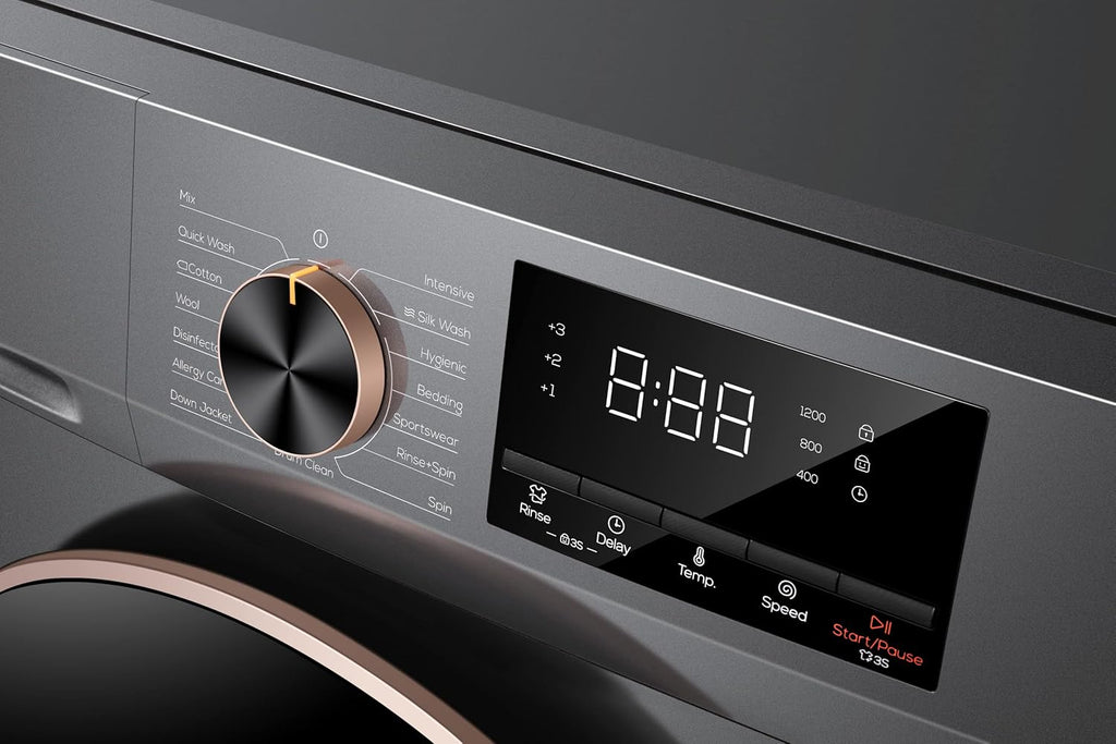 • Versatile Washing Programs: Offers 15 wash programs, including specialized options like Drum Clean and Spray Wash, to cater to various fabric types and cleaning requirements."