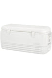 • Durable polar cooler featuring an Ultratherm insulated body and lid. Reinforced swing up handles with tie down loop feature. Dual snap fit latches. Threaded drain plug. Stain and odor resistant liner. Child safety latch. 188 can capacity.