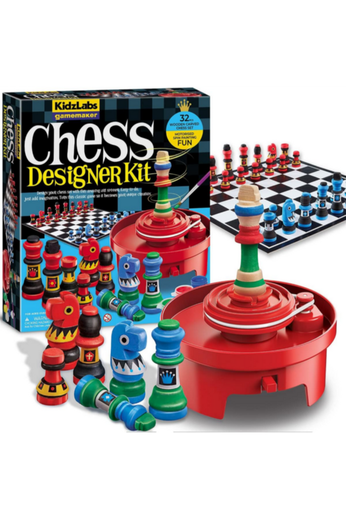 • Design your very own chess set with this amazing art spinner! Comes with a full set of undecorated chess pieces, ready for you to add your creativity and create your own design, using the art spinner, paints and stickers included.