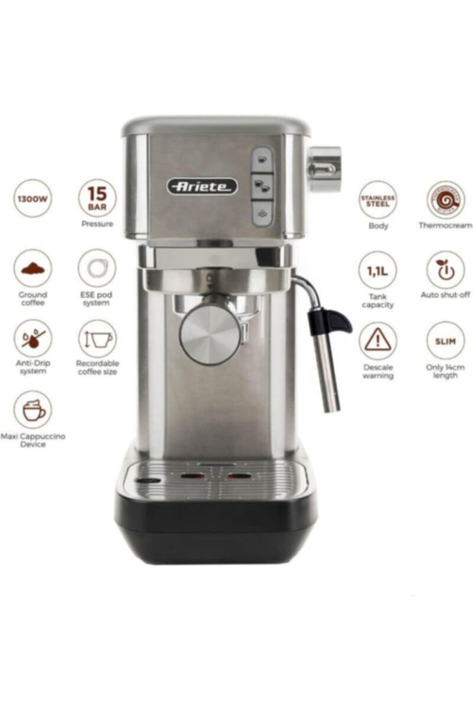 • FEATURES and FUNCTIONS: The Ariete Pump Espresso Coffee Maker features a 1.1 liter tank capacity, an auto shut off function, and a milk frother. It provides the perfect combination of convenience and versatility for brewing delicious espresso based beverages at home