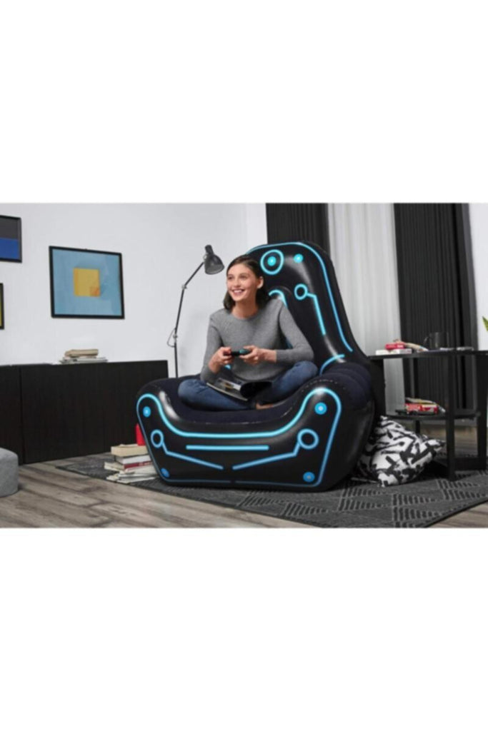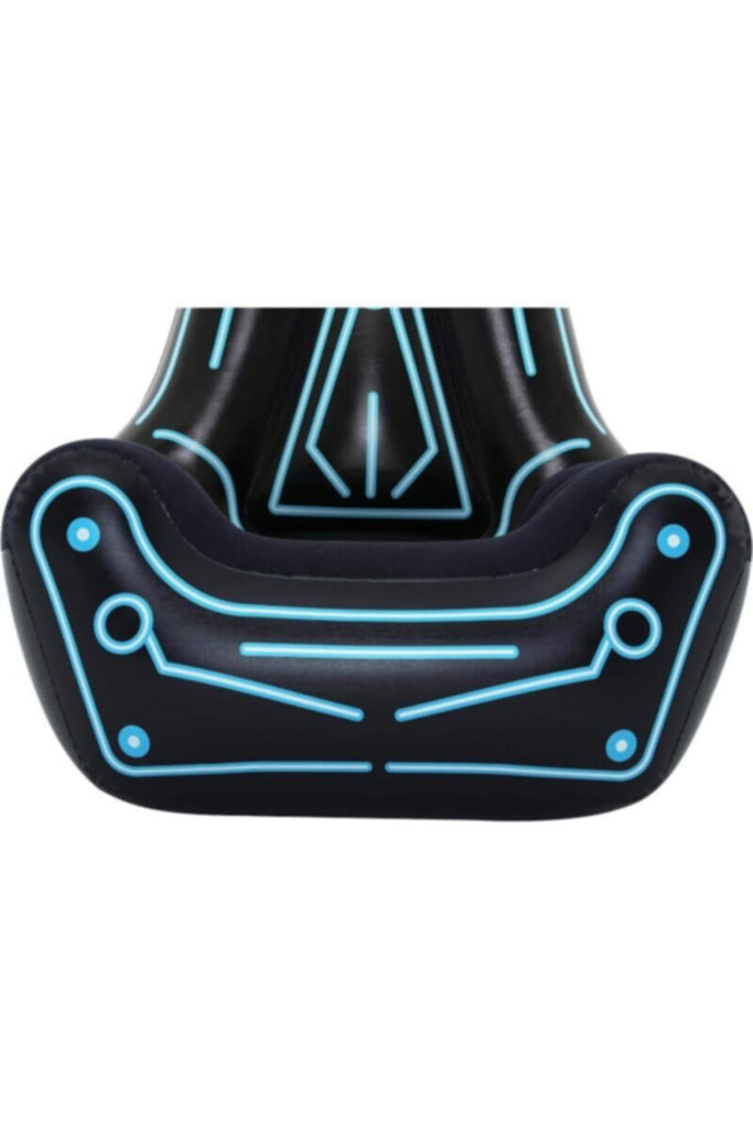 Game on The Bestway Mainframe Inflatable Armchair is made for the gamers. Enjoy playing your favorite video game from the comfort of this inflatable chair. The oversized arm and backrests are the perfect size for lounging, and the futuristic print will surely fit right into your game room, dorm room or bedroom. Plus, theres a mesh storage pocket for your extra controllers. Portable, comfortable and awesome this is the ultimate gamers chair