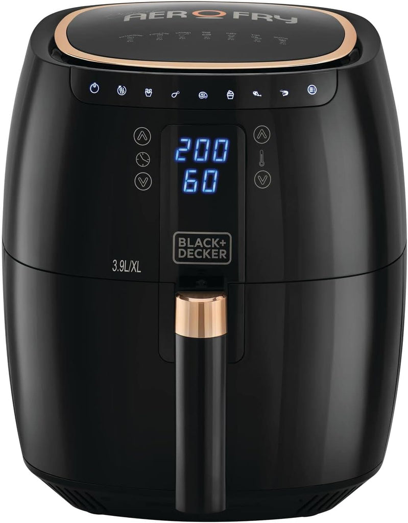 Experience healthier, crispy cooking with the Black+Decker 7 in-1 Multifunction Digital Air Fryer! This versatile appliance features a spacious 5.5L pan and a 3.9L detachable food basket, perfect for families. Its Rapid Air Convection Technology ensures even cooking with little to no oil, making your favorite dishes guilt free.