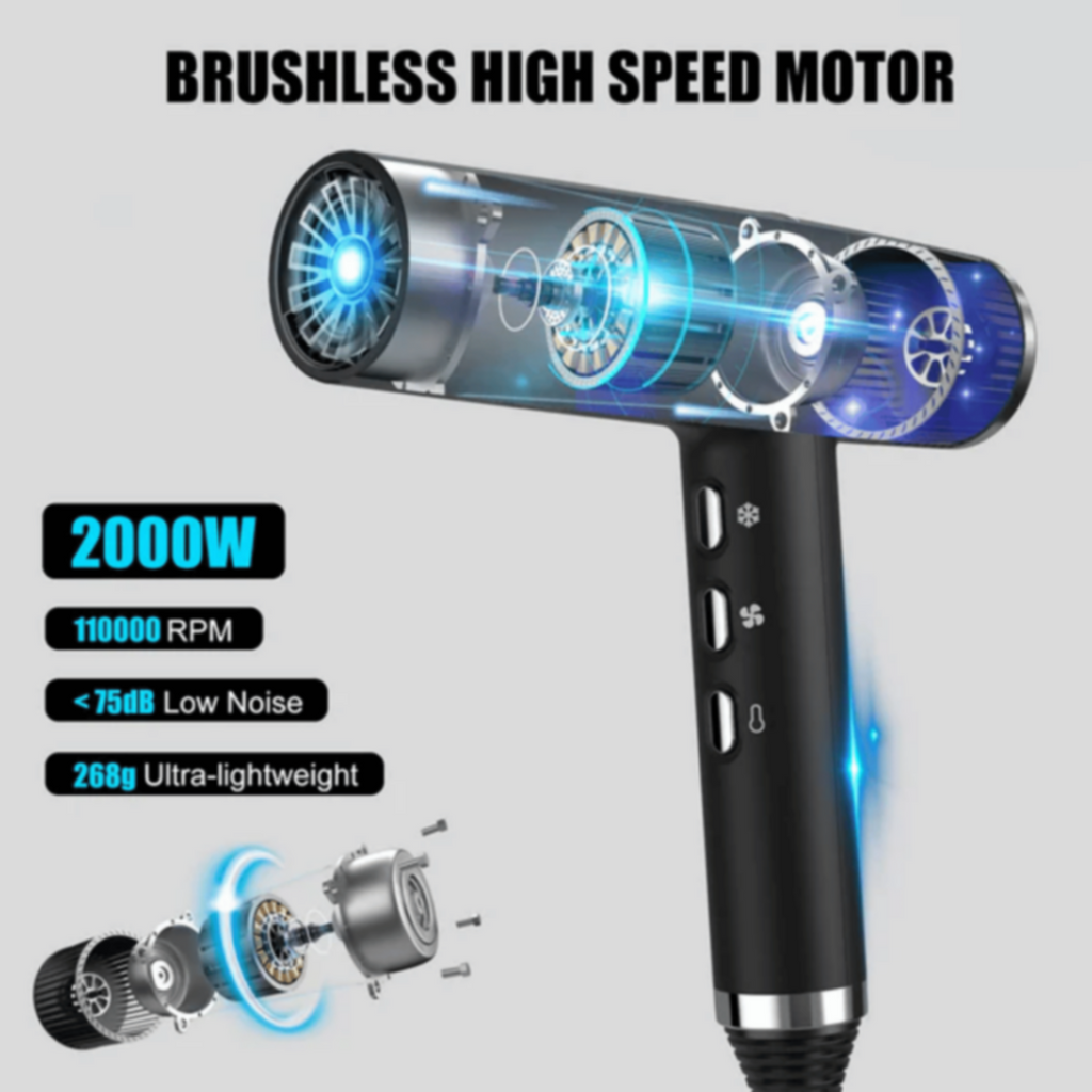• The dryer is equipped with a brushless motor that provides an incredible rotational speed up to 110,000 revolutions per minute! At the same time, it keeps the noise level low so that you can enjoy silence and comfort while drying.