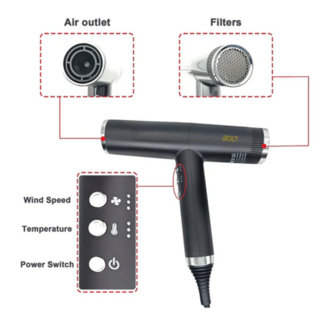 BOLT PROFESSIONAL HAIR DRYER (BLDC) The ultra light and compact dryer weighs only 180 g, providing you with convenience and ease of use. With three air temperature and speed settings, you have..