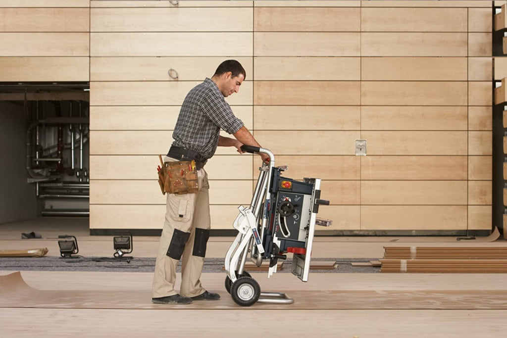 Saw stand GTA 60 W; Unlimited flexibility " The new mobility concept for benchtop tools; Double the benefit: a means of transport and a work bench in one; Easy to assemble and dismantle with only one lever movement, without having to remove the benchtop tool; Large rubber tyres for convenient transport.