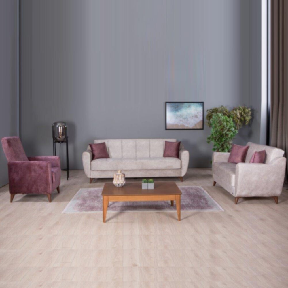 The structure of the sofa is made of horn beam wood and elastic colon under seating to give firm and solid shape. Sofa set is filled with high density sponge and upholstered with polyester fabric for additional comfort. Available in two tone color – Beige / Purple brown Country of origin Turkey. The King Single Seater Fabric Sofa is minimal and stylish too! We love the rich purple brown color of the sofa that will look in any home. We also love the plush cushioning on the sofa that allows you to sink into it comfortably.