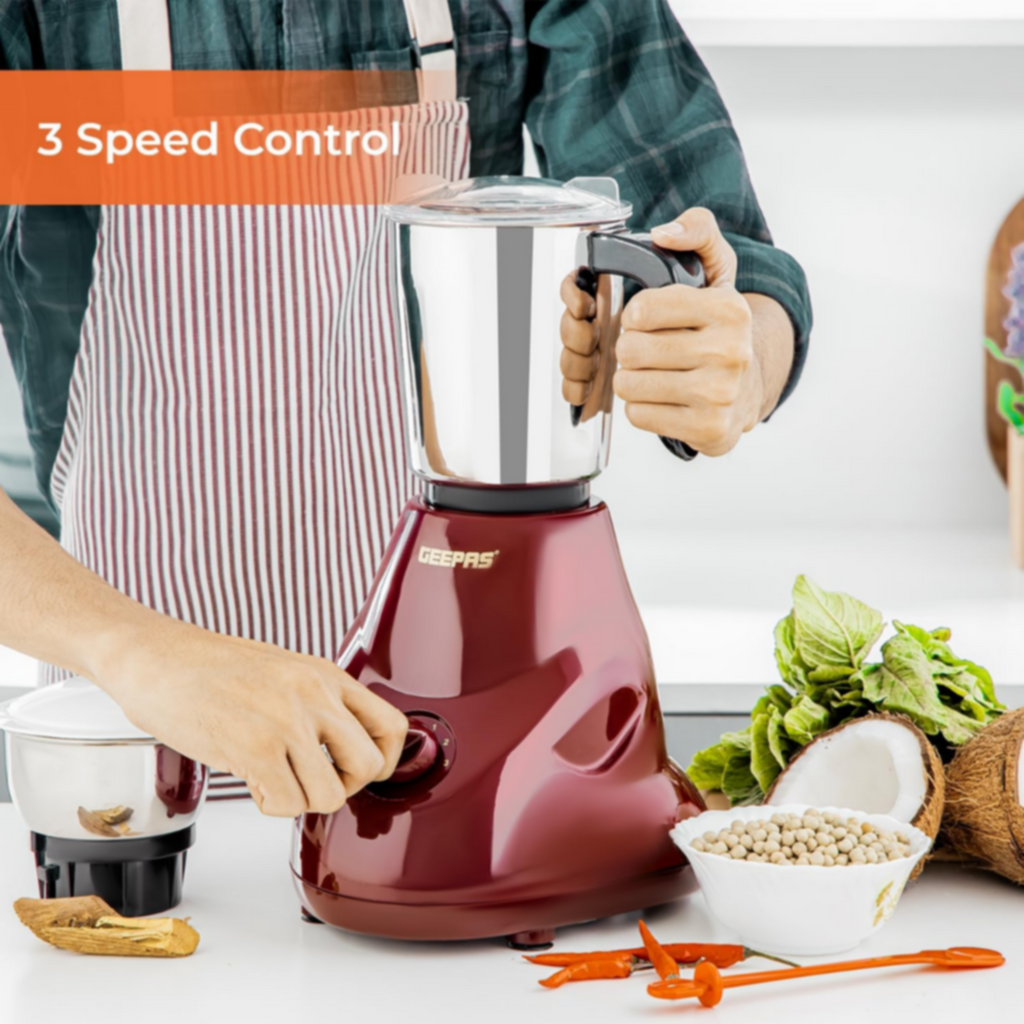 • This Grinder mixer comes with Wet & Dry grinding stainless steel blades for fine grinding and mixing; making it easy to make smoothies, batters & purees. Keep control over your grinding and mixing blending creations with the three speed functions