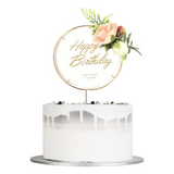Happy Birthday Flower Cake Topper Decoration - Round | MGS-058