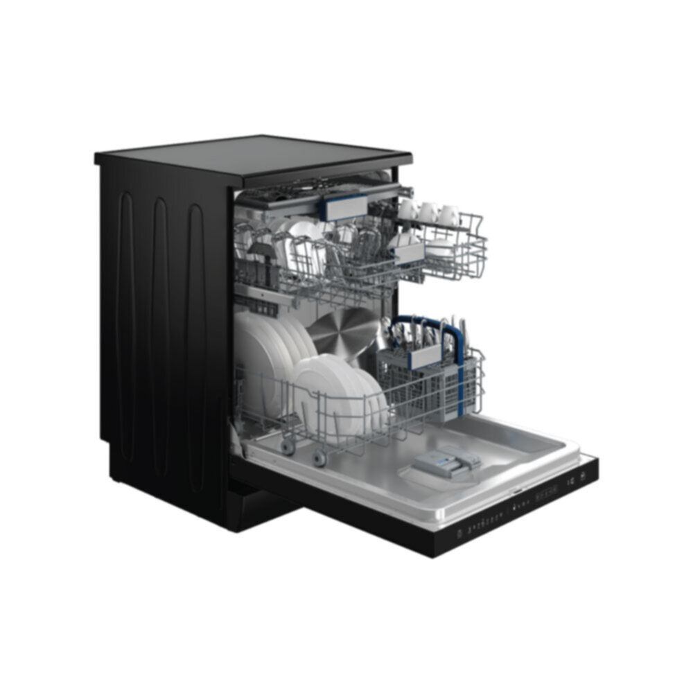 | Weight (Net/Gross • Surround Wash: Surround technology ensures that no corner of your machine is left uncleaned, with powerful spray arms reaching every spot including those tricky corners • Steam Shine: Following the dishwashing cycle, an extended heat application of an extra 10 minutes drying function for dishes • Glass Care: A special cycle designed for glass protection, the glass care programme provides gentle washing at 40 C • Rapid 58: If you're short on time, Rapid 58 is the ideal programme for quick cleaning and drying performance in just 58 minutes • Sliding Cutlery Basket: A removable sliding cutlery basket provides added convenience for dish placement • Intense Wash: Bottles and other items up to 30 cm in depth can be washed in the specialized zone located on the bottom rack. Intense Wash creates a powerful cleaning zone with intense water pressure and offers up to 5 times* better cleaning performance. * Internal test results conducted vs. various stains using Intensive 70 program • Auto Open Door with Automatic Self Dry: During drying cycle, the door opens by about 10 cm, allowing fresh air circulation to remove moist hot air from the inside of the dishwasher. This natural airflow boosts drying efficiency • Hygiene Care: When selecting the Hygiene Care function, the washing cycle temperature is raised to at least 60 C, with an additional 30 minutes of hot rinse cycle (min. 70 C). This high temperature generates a steam mist that effectively eliminates 99.999% of bacteria and viruses* by reaching every dish. Test conducted in Intensive 70 program on microorganisms: Enterococcus faecium, bovine Coronavirus murine Norovirus • Cutlery Drawer: Maximise the use of available space by effortlessly loading all types of dishes and washable items • Inverter Motor: Hitachi dishwashers use an energy efficient, brushless inverter motor. The motor not only reduces noise but also enhances performance and durability • Recycled PET Chasis: Hitachi dishwashers have an eco friendly chassis made from recycled plastic bottles, which not only protects your dishes but also the environment • 43dBA • Cornerwash • Deepclean • Auto Door Opening • Cutlery Tray • Inverter Motor • Note: Paylater Not applicable | ||