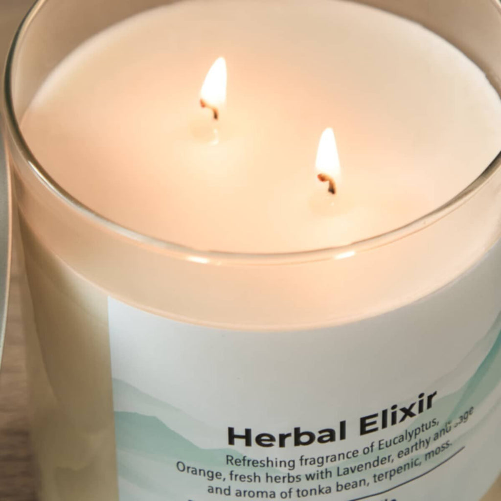 Infuse your home with the soothing scent of herbal elixir with this modern candle. This jar candle is made with wax and has a metal lid to keep it safe when not in use. With a burn time of up to 50 hours, it will keep your space smelling fresh for days on end.The product images have props used for illustrative purposes.