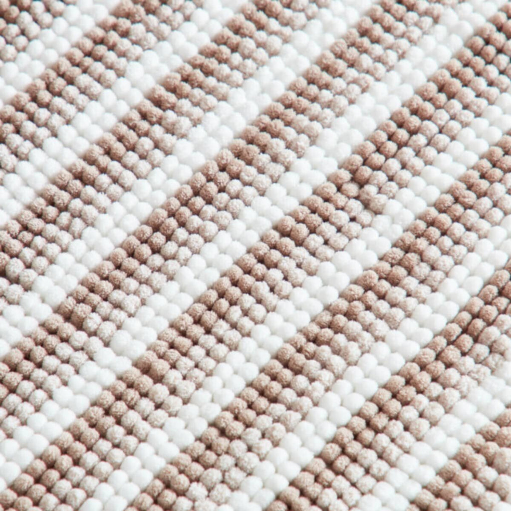 Spruce up the bathroom floor with this chic bathmat. It is accentuated by a striped surface design and lends a soft feel against the feet. It is well crafted from colour fast material and is foldable. This mat has easy maintenance and good durability. The product images have props used for illustrative purposes.