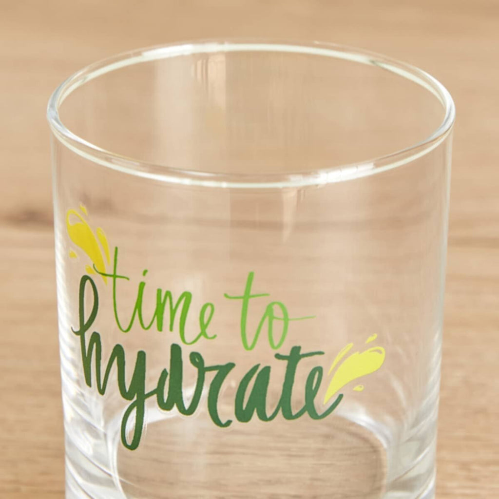 This glass tumbler is ideal for serving beverages. Made of durable glass, it is food safe. This tumbler is perfect for everyday use and features a printed design for an appealing touch.The product images have props used for illustrative purposes.