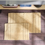 Step into a world of comfort with this elegantly designed bathmat set. Crafted from pure cotton, this duo offers superior softness and remarkable absorbency, ensuring a spa like experience after every bath. Thoughtfully designed to be reversible, each mat showcases a unique pattern on both sides, allowing you to switch up your bathroom decor effortlessly. Available in versatile muted hues, this set of two mats will complement various bathroom styles seamlessly.The product images have props used for illustrative purposes.Product Colour may vary slightly due to photographic lighting sources or your monitor/screen settings.