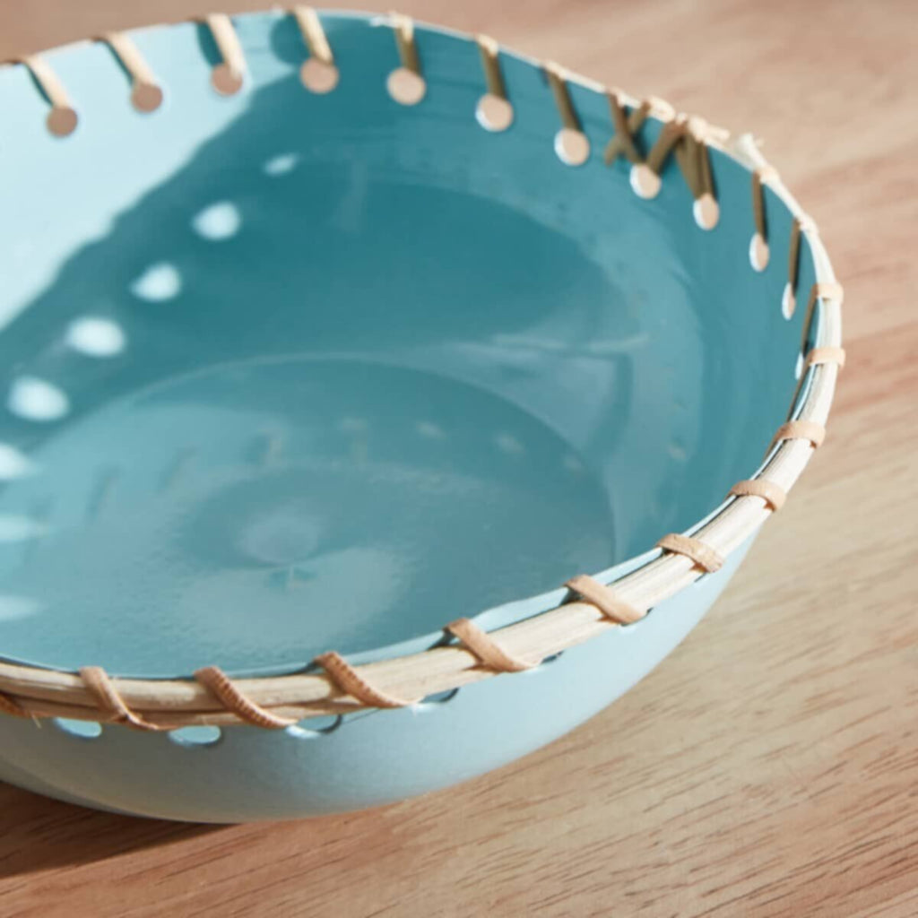 This beautiful decorative bowl adds a touch of elegance to any room. Made of metal with a neat huem it features a round shape and cane detailing along the rim. Perfect for displaying on a coffee table, shelf, or mantel, this versatile bowl can be used to hold keys, coins, jewellery, or other small items.The product images have props used for illustrative purposes.
