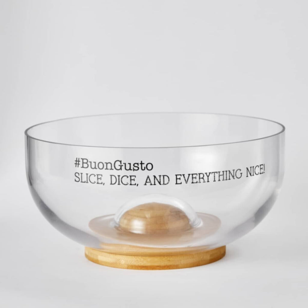 This stylish and elegant bowl is the perfect way to serve food at your next party or gathering. Made from high quality glass, this bowl is durable and easy to clean. The bamboo stand adds a touch of sophistication and is perfect for displaying fruit or other snacks.The product images have props used for illustrative purposes.