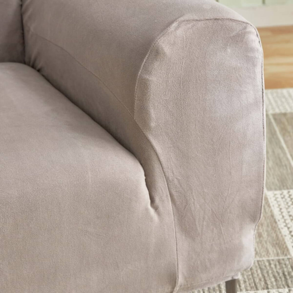 Protect your furniture with this cosy and stretchable sofa cover. Crafted from a soft and plush fabric, it is designed to fit most sofas, providing a comfortable and stylish update to your living space. Its anti bacterial, wrinkle resistant, and non pilling properties ensure long lasting durability, while its machine washable feature makes it easy to maintain. Free from harmful chemicals and dyes, this colour fast cover is safe for your home and the environment. The product images have props used for illustrative purposes.
