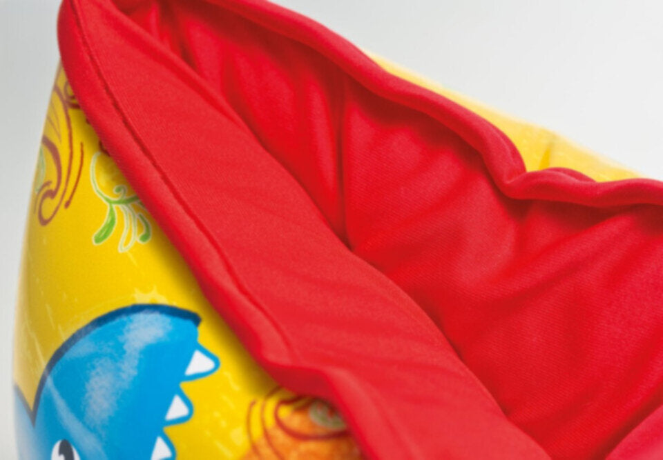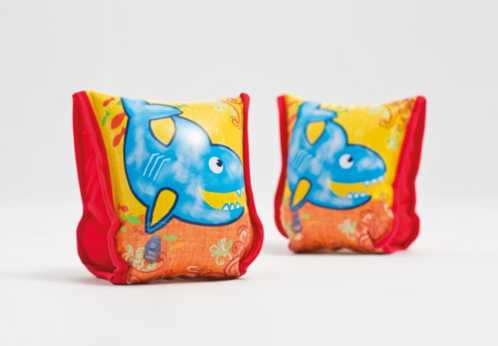 • Help kids learn to swim with the easy to-use Intex Deluxe Arm Bands. These swim aids are designed with a bright neon orange color that is highly visible in the water.