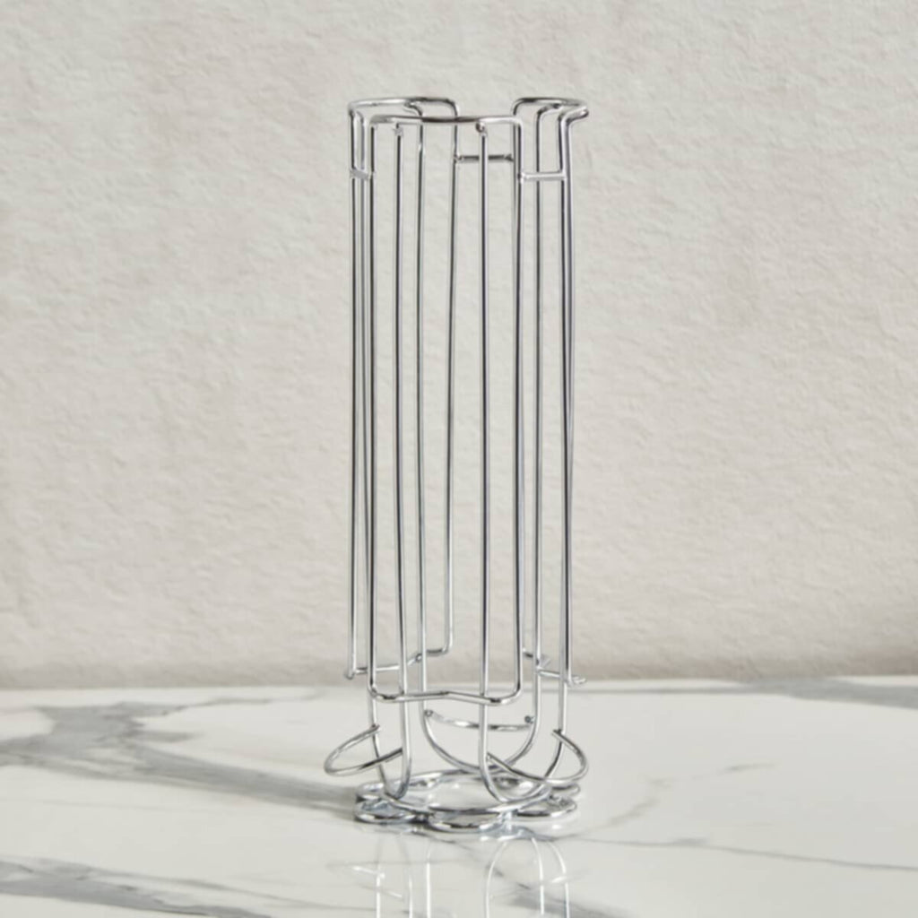 Keep your coffee pods organized and easily accessible with this elegant and practical coffee capsule holder. Crafted from durable iron, this holder can hold up to 18 capsules. Its compact size and stylish design make it an ideal addition to any kitchen countertop.The product images have props used for illustrative purposes.
