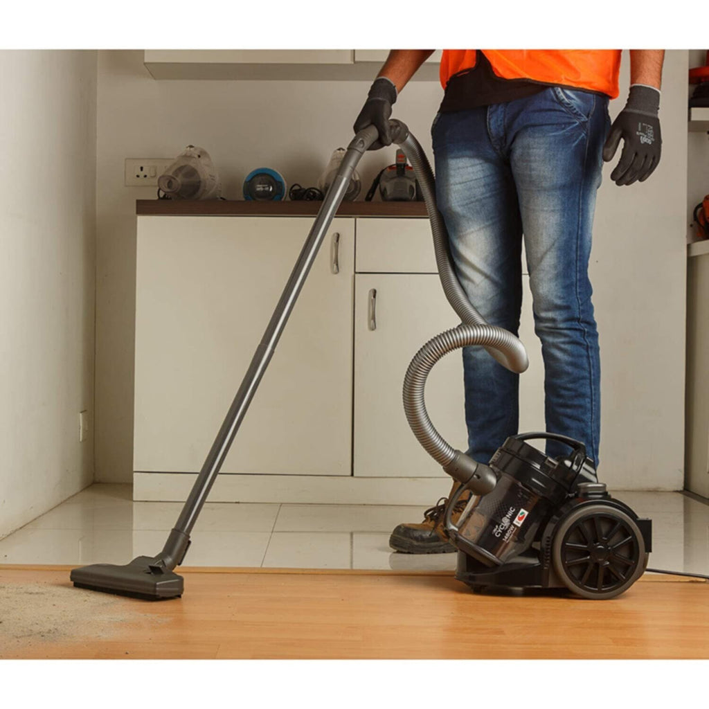 BLACK+DECKER manufactures high-quality power tools and hand tools, that are engineered to make operation easier and convenient. This bag-less vacuum cleaner has a 2.5L dust bowl and a six stage filtration system with multi-cyclonic action which spins dust and debris away from the filter. It has a 1480W powerful motor which offers high suction power for easy cleaning. â—† Equipped with powerful 1400W motor delivers 18 KPA strong suction power and ensures long time operation.Multicyclonic action spins dust and debris away from the filter so suction power remains strong â—† Translucent canister design to see the dust collection and empty it, compact design for saving storage space.2.5L dustbowl capacity â—† One touch quick empty feature for convenient dust canister cleaning, large floor head for maximum floor coverage â—† Variable speed stepless suction for better control â—† 5 meter cord length, 1.5 m 360 degree swivel hose for better reach. â—† 1.3 cubic meter/min airflow â—† Washable low maintenance filters â—† Includes: Vacuum cleaner unit,2-in-1 brush, round brush, upholstery brush |