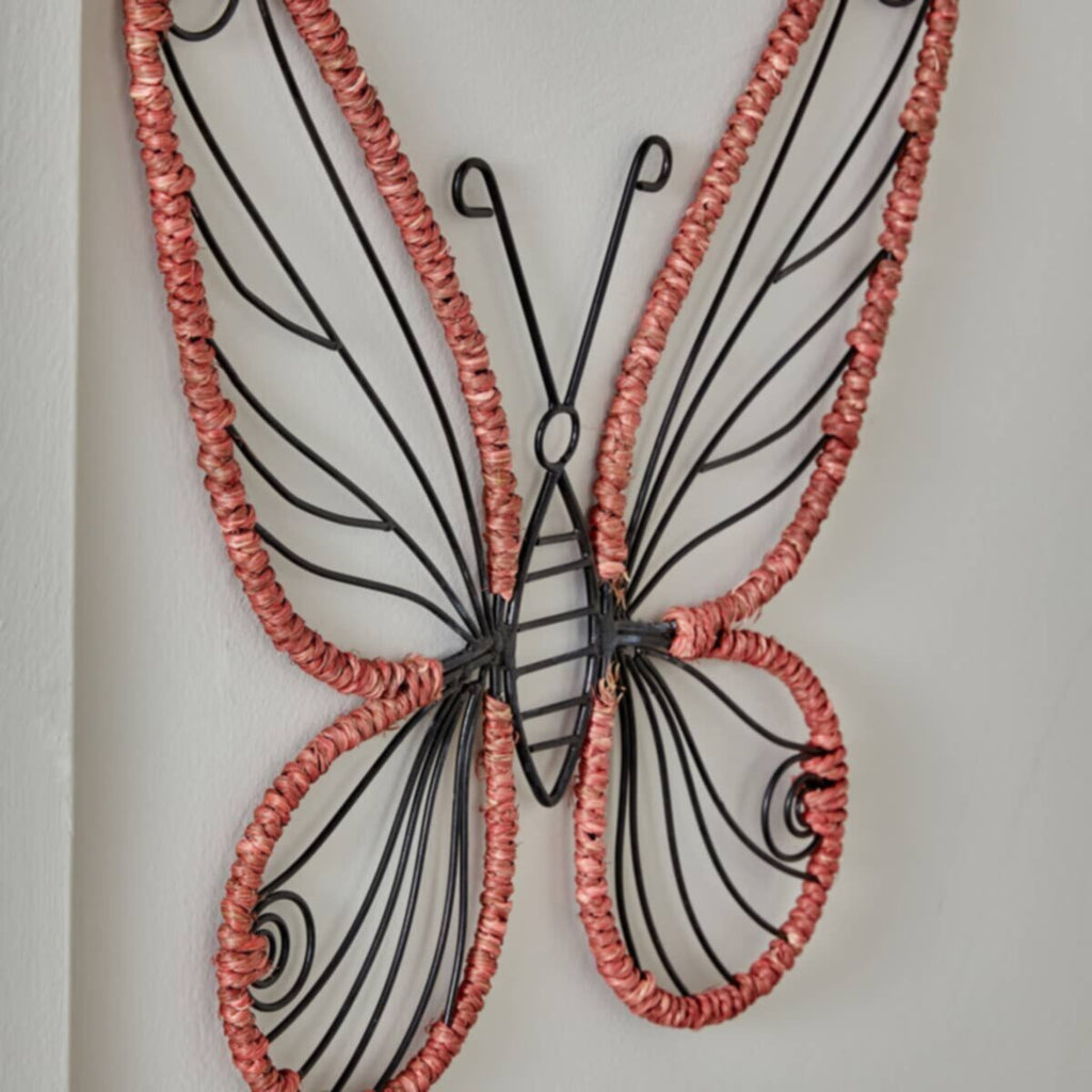 Featuring a beautiful butterfly design, this metal wall art is a splendid addition to your home decor. Crafted from durable metal, this art piece is sure to add a touch of elegance to any room. It can be easily hung on any wall, making it a great way to enhance your home's aesthetics.The product images have props used for illustrative purposes.