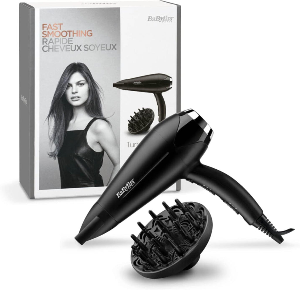 BaByliss Turbo Smooth Hair Dryers BaByliss Turbo Pro Hair Dryer has gives fast, powerful drying and lightweight handling. The ionic frizz-control system releases conditioning ions to smooth the hair and add shine. The easy click-on diffuser enhances and defines natural curls and boosts volume as you dry, while the slim concentrator nozzle gives controlled smooth styling.