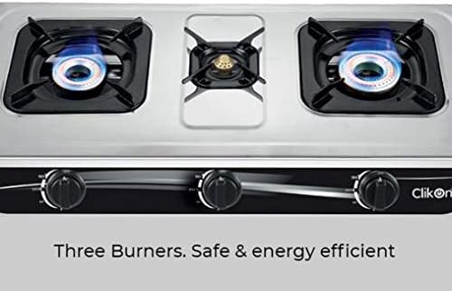Upgrade your kitchen with the Clikon CK4253 Triple Burner Gas Stove, a perfect blend of functionality and style. Crafted with a durable stainless steel body, this gas stove features three high-efficiency brass burners that ensure uniform heat distribution for optimal cooking results. The automatic ignition system offers convenience and safety, eliminating the need for external lighters or matches. With its sleek silver and black finish, the CK4253 not only enhances your kitchen's aesthetics but also provides robust performance for all your cooking needs.