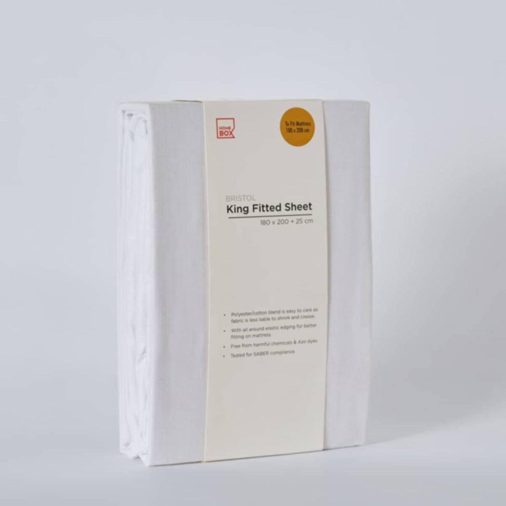 Experience a restful sleep with this polycotton king fitted sheet, crafted from a soft and durable blend of polyester and cotton. This sheet is easy to care for, with reduced shrinkage and creasing. The all-around elastic edging ensures a secure fit on your mattress, providing a smooth and comfortable sleeping surface. Free from harmful chemicals and Azo dyes, this sheet is also tested for SABER compliance, ensuring the safety and well-being of your family.The product images have props used for illustrative purposes.Product Colour may vary slightly due to photographic lighting sources or your monitor/screen settings.