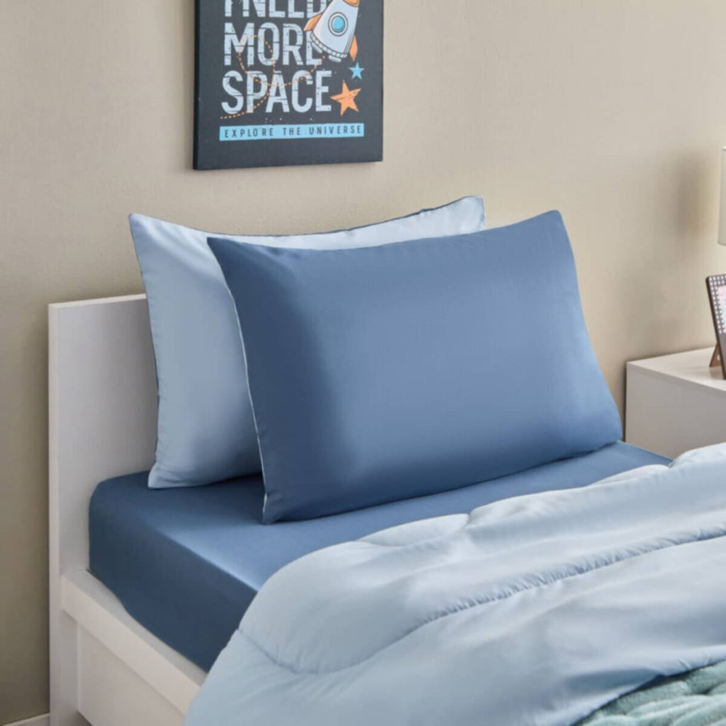 Give your little one's bedroom a refreshing touch with this pair of microfibre pillowcases. The set features easy-care properties, making it a perfect choice for a child's room. The reversible design offers double the styling possibilities and will keep your child's bed looking its best.The product images have props used for illustrative purposes.