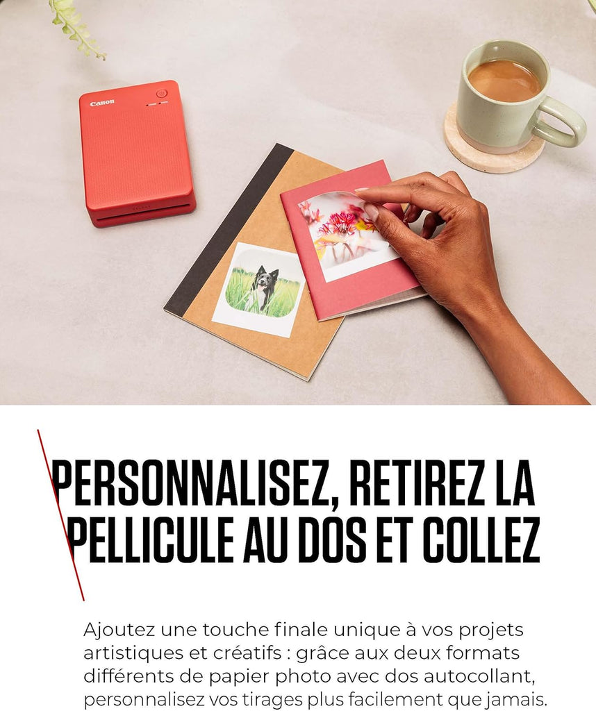 The Canon SELPHY QX20 is a compact and portable photo printer designed for on-the-go printing. Utilizing dye-sublimation thermal transfer technology, it delivers high-quality, vibrant prints that can last up to 100 years when stored properly. With support for both square and card-sized sticker paper, and wireless connectivity via the SELPHY Photo Layout app, it's perfect for creating personalized photo prints anytime, anywhere.