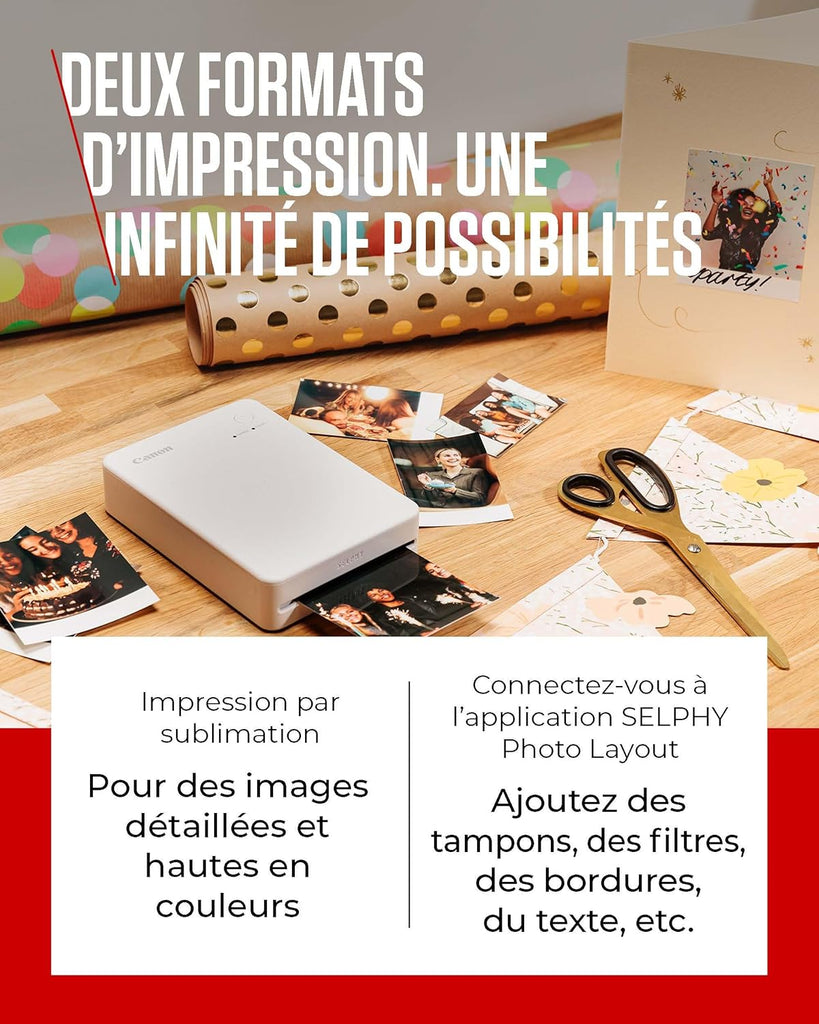 â—† Wireless Connectivity: Easily connect and print from your smartphone using the SELPHY Photo Layout app, available for iOS and Android.