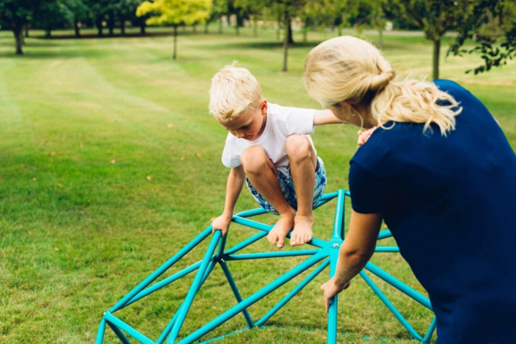 The Plum Deimos Metal Climbing Dome will add a splash of color to your backyard. Climb, balance and enjoy a healthy playtime on this geometric frame.