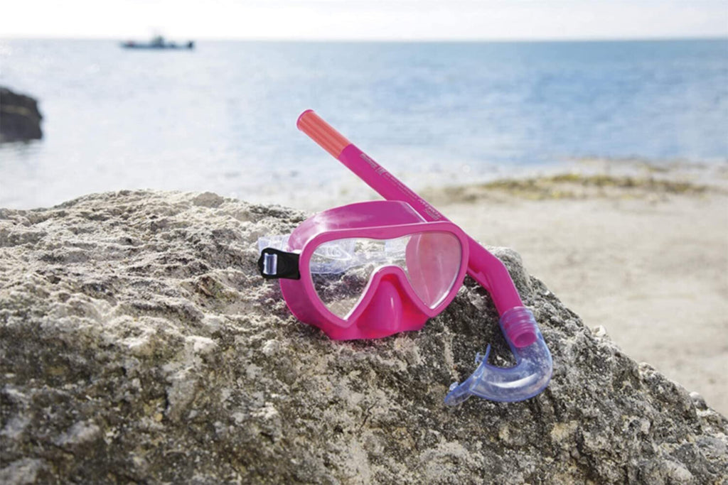 ◆ The Hydro-Swim Essential Lil’ Glider Set is perfect for those lil’ swimmers that you just can’t keep out of the water! The aviator-style polycarbonate lenses have a UV protective coating to keep their eyes safe while having fun in the sun. The double feathered edge skirt fits comfortably while preventing against water getting inside the eye or nose piece. On top of that, the mouthpiece is made out of a soft material, so it sits comfortably in their mouth when they use it to breathe. Along with that, the head strap is fully adjustable, so you can make it the perfect size! Set includes a goggle mask and a snorkel mouthpiece Comfortable, double feathered edge skirt around mask prevents leaks Mask has durable polycarbonate lenses with a UV coating Adjustable split head strap to make them the perfect size Made with non-latex based materials ESSENTIAL LIL' GLIDER SET * Aviator style polycarbonate lens with UV protective coating * Comfort fit, double feathered edge skirt to prevent against leakage * Soft comfort-fit snorkel mouthpiece * Fully adjustable split head strap * 100% latex free Contents: One mask, one snorkel Made in China