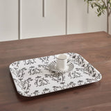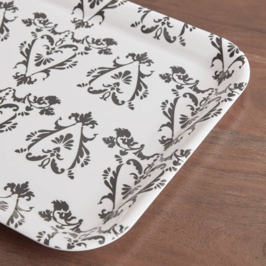 The Gusto collection flaunts a lovely black and white theme that has some original form from the art deco movement of the 1920s. Sharp edges with defined linear appearance, Gusto is decorative with elements of geometrical form. Serve your guests elegantly with this rectangular tray enriched by all-over ethnic motifs. It is well-crafted from food-safe bone china and is microwave-friendly. This light-toned tray will be a classic piece in your serveware collection and is suitable for the dishwasher.The product images have props used for illustrative purposes.