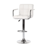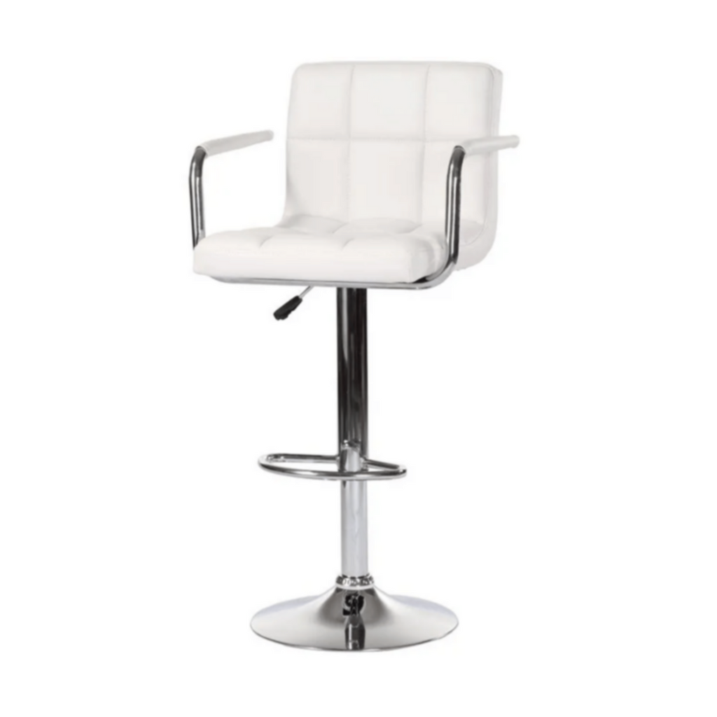 We simply love this bar stool! It is upholstered with PU leather for a soft and comfortable feel and has armrests for an extra comfortable seating experience that flaunts a classy and timeless look. The stool is also height adjustable. Available in white & black color.