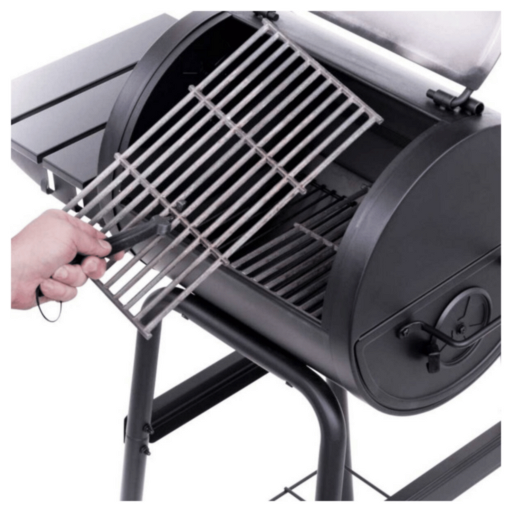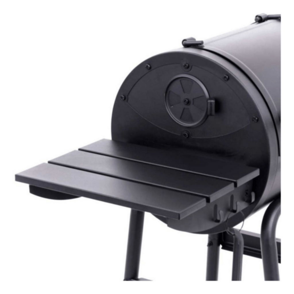 Cook delicious chicken roasts for your family with the Char-Broil American Gourmet Charcoal Grill Black. This cast-iron grill is coated with a special black finish for withstanding high temperatures. In addition, it has two casters at the back for enabling easy portability. This grill has a side table and an open base shelf for holding sauces, bread baskets, and herbs for cooking.