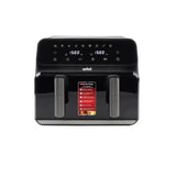 9L Dual Digital Air Fryer, a powerful and versatile cooking solution for large families and gatherings. With its massive 9L capacity and unique double compartments with see-through glass, this air fryer allows for simultaneous healthy cooking of different foods or can be used as a single large zone for larger items. With a powerful 1700W of power and a match cook function, it ensures efficient and perfectly cooked meals every time. The temperature range from 60 to 200°C and digital timer from 1 to 60 minutes provide precise control, while the LED digital touch control panel makes operation intuitive. Enjoy crispy exteriors and moist interiors with 80-99% less fat, thanks to the 8 preset programs. Cleanup is a breeze with the PFOA-free non-stick coating pot, and the cool touch stainless steel handles ensure safety and convenience. Experience cooking convenience and versatility on a larger scale with the Energy Efficient and Asthetic Digital Air Fryer