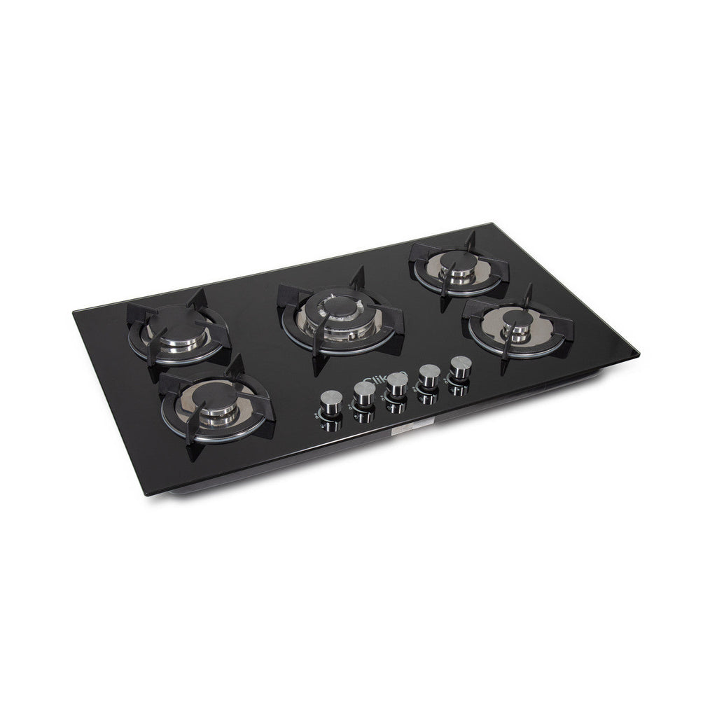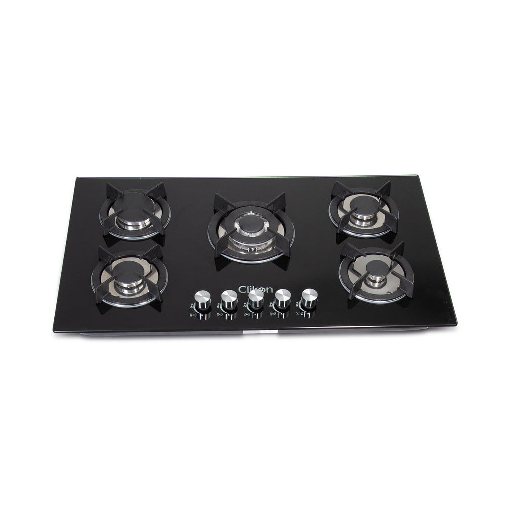 Elevate your culinary experience with the Clikon 5-Burner Stainless Steel Glass Top Gas Hob. Designed for both functionality and aesthetics, this premium kitchen cooktop features a sleek tempered glass surface paired with a durable stainless steel frame, adding a touch of modern elegance to any kitchen. Equipped with five high-efficiency brass burners, it ensures uniform heat distribution for optimal cooking results. The automatic ignition system offers hassle-free operation, eliminating the need for external lighters. With its robust construction and user-friendly design, the Clikon 5-Burner Gas Hob is an ideal choice for contemporary kitchens.