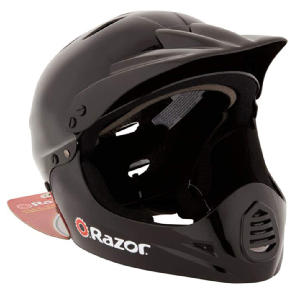 Tough yet lightweight durability is the trademark of the full face youth helmet from Razor. Designed with a spacious eye port that provides plenty of room for goggles and great visibility, the full face helmet offers ideal protection for high-intensity biking that requires full-face coverage headgear. The ergonomically designed padding and additional sizing pads provide a perfect fit and guarantee comfort. With 12 vents, the wearer's head stays cool at all times, and the side release buckles make it a breeze to adjust and fasten your chin strap.