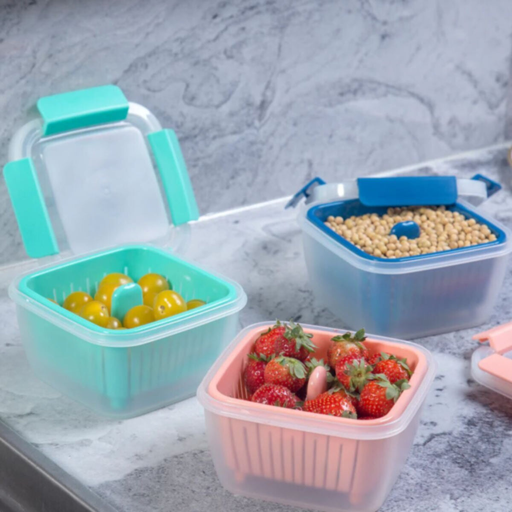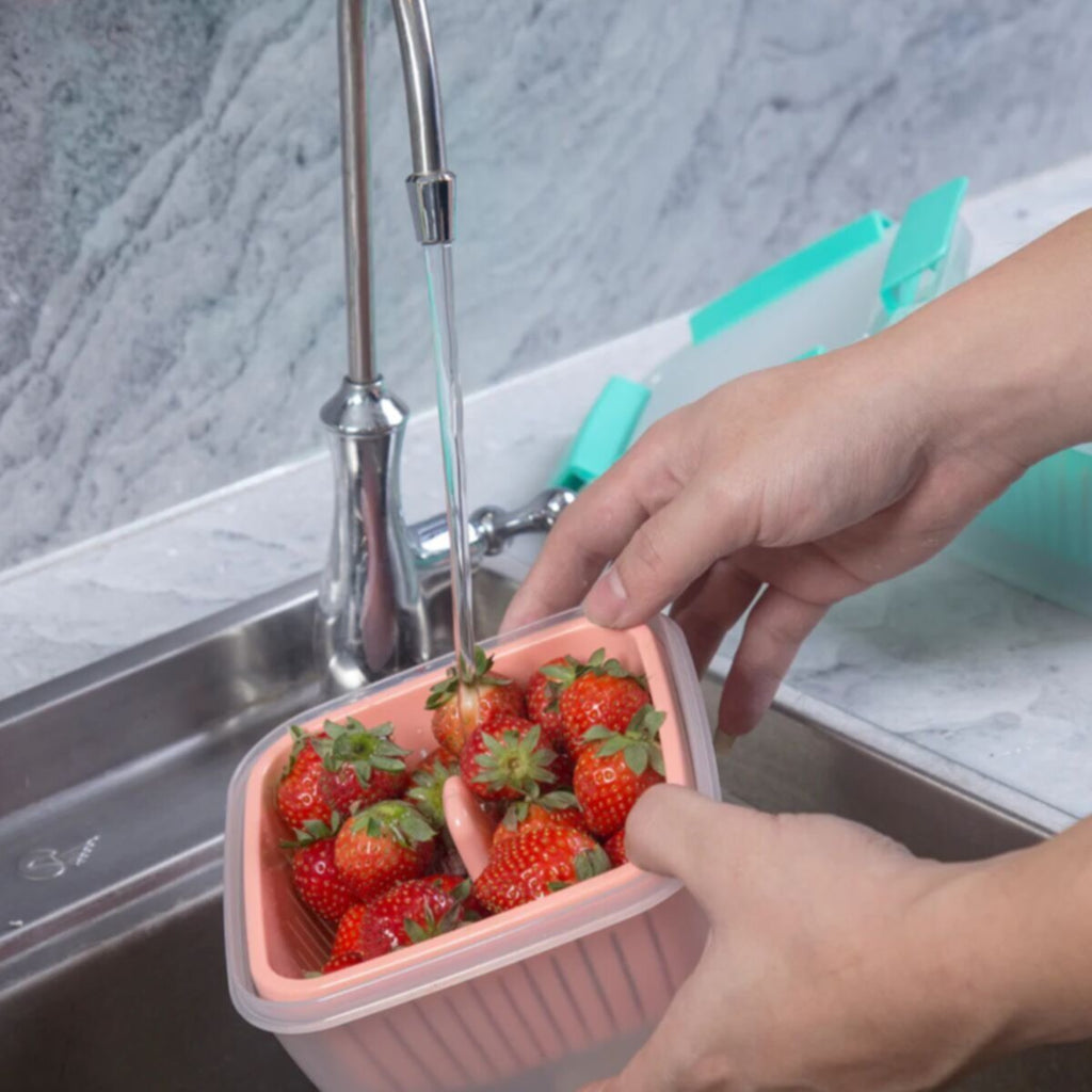 ◆ Care Instructions: • Non Toxic and BPA Free• With drainer,use it to wash fruit or vegetable • Dishwasher Safe• Four Sided locks for Leakproof