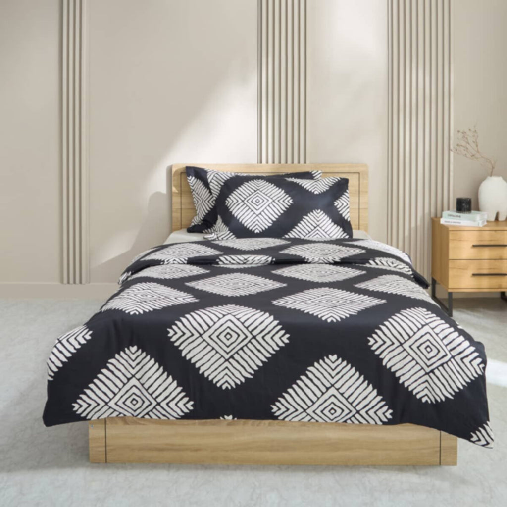 Enjoy a soft and luxurious slumber with this cotton duvet cover set, featuring a beautiful printed design. The combed and mercerized fabric provides a rich sheen and a silky-smooth feel. This set features a duvet cover and two pillowcases, free from harmful chemicals and dyes.The product images have props used for illustrative purposes.Product Colour may vary slightly due to photographic lighting sources or your monitor/screen settings.