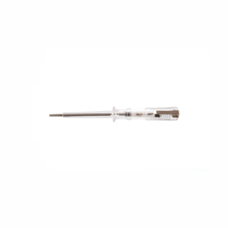 100V to 250V contact tester with neon lamp.Works up to 30,000 times.Moulded insulated blade sheath.Ideal for testing in both dark and sunlight conditions.Transparent plastic handle for maximum safety.