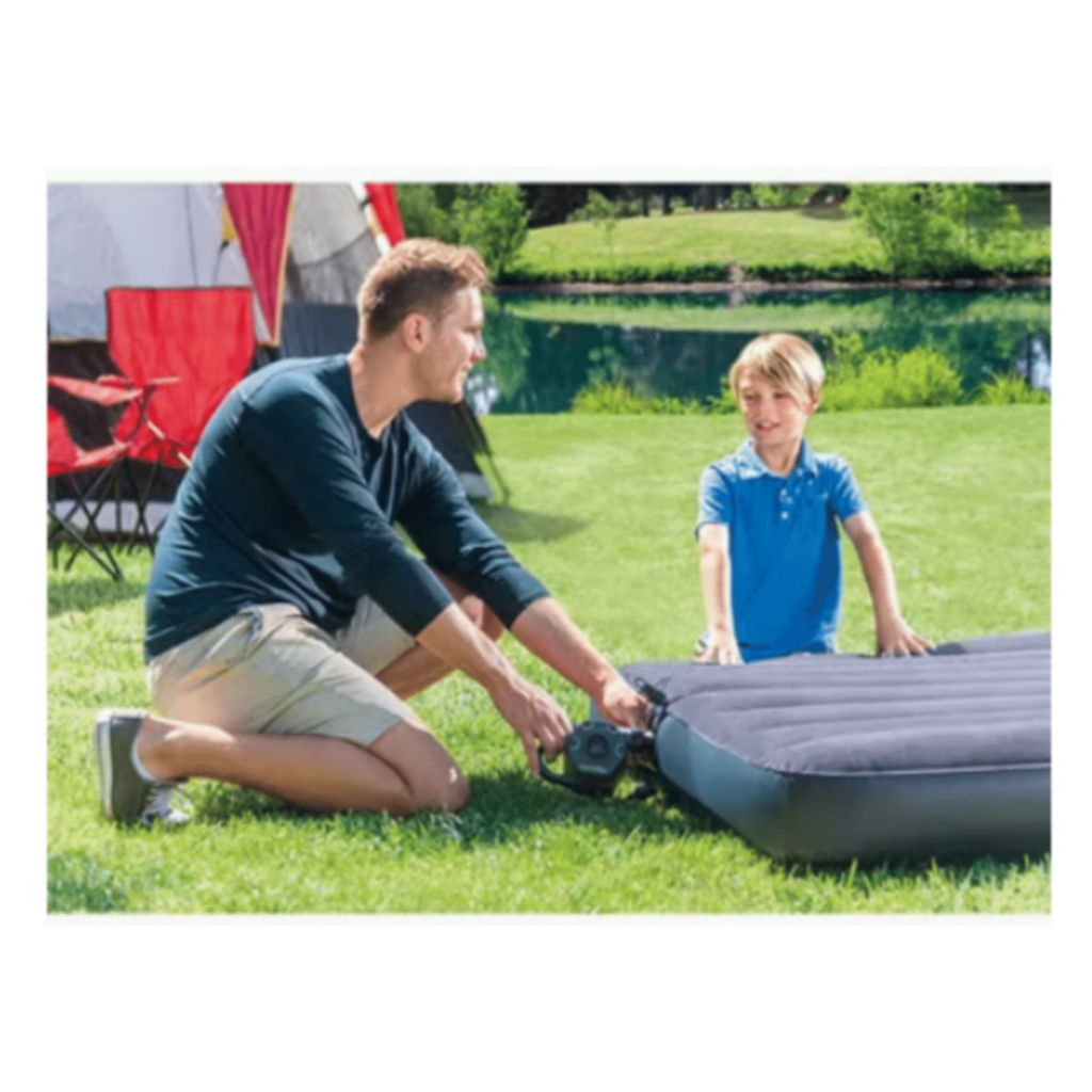 It comes with 3 nozzles makes this pump compatible with many different inflatable products while the 650L/min max air flow gets the job done quickly.