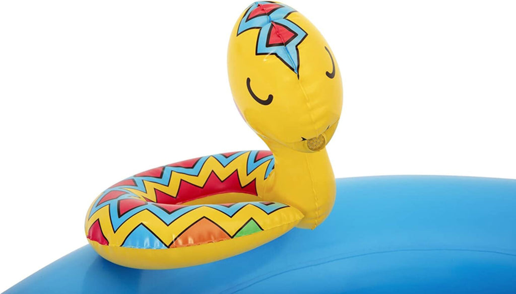 Take a trip out to the desert with the Bestway Wild West Play Center! Kids can feel the thrill of being a real cowboy out on the frontier, while riding on the included inflatable horse toy. This play center also features a removable slide with a sun archway, welcoming them to the Old West. They can use their imagination while playing horseshoes, all while working to improve their hand-eye coordination and dexterity. Kids can also play with the snake, which includes a built-in sprinkler to provide extra splashing entertainment. Simply attach a garden hose to get the fun started!