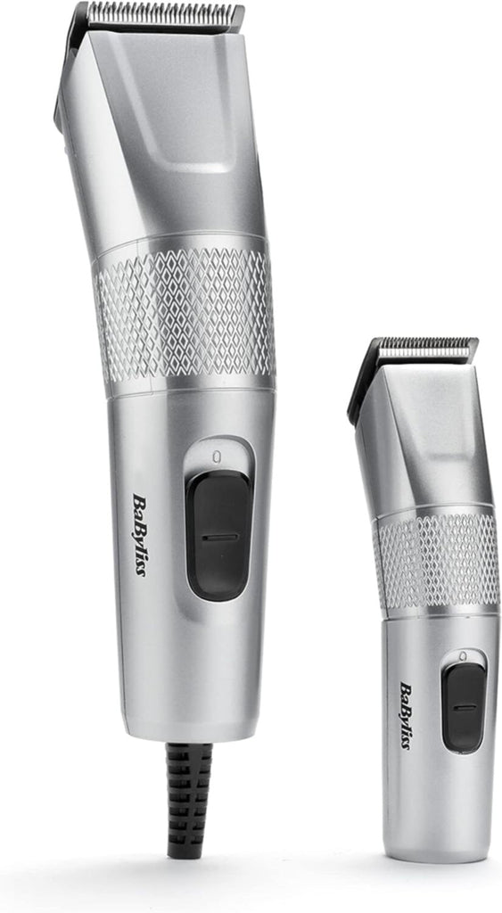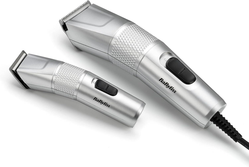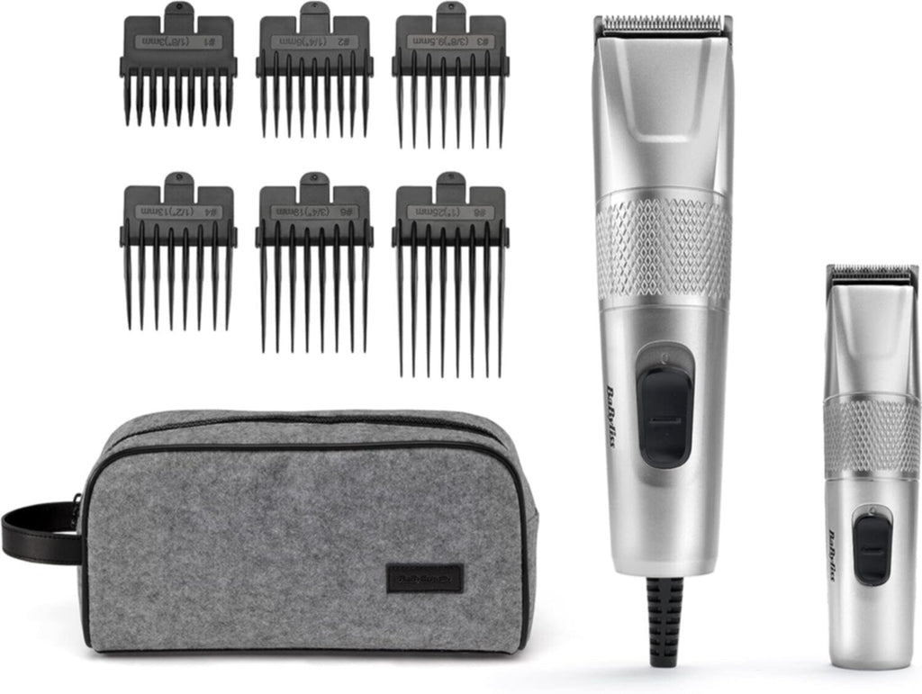â—† BABYLISS 'STEEL EDITION 'HAIR CLIPPER GIFT SET A mains operated clipper with a separate battery mini trimmer and stylish wash bag.