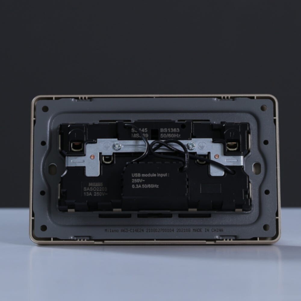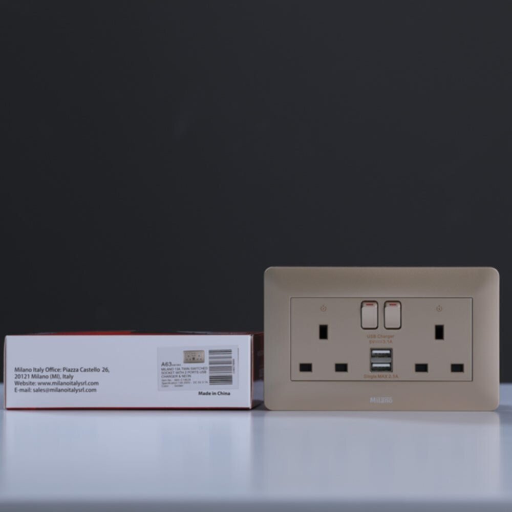 MILANO | 13A Twin Switched Socket Neon With Usb Gd | 210802700004