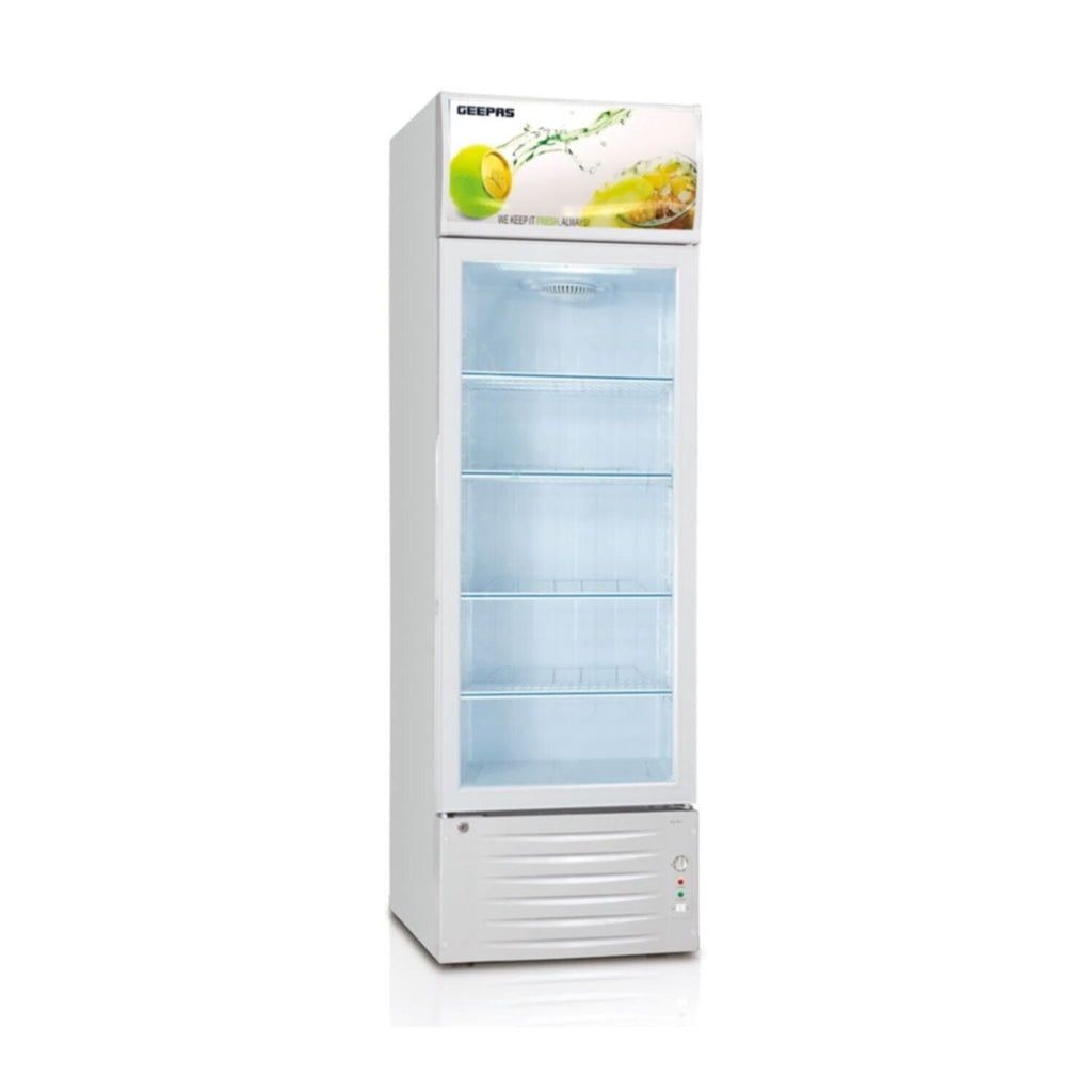 â—† The Geepas 380 L anti-frost showcase refrigerator features an all-around cooling technique that maintains the temperature from top to bottom. This refrigerator has outside condenser and adjustable thermostat that ensures reliable operation. With the easy side shelve design, you can conveniently access your food items. Interior lamps, top light display are added advantage for people who are showcasing the products.